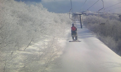 しかも、天気予報が暴風雪だったせいか、お客さんの数が少ない!ゲレンデをひろーく使えましたよ。