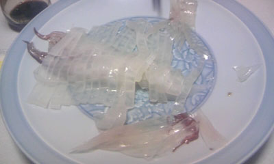 釣りたてのヤリイカの刺身は初めて食べましたが、アオリとくらべて甘味が強く、透き通ってコリコリしてて最高