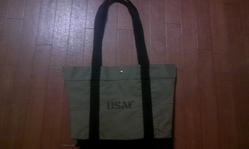 さらにスーパーへの買い物時に活躍するマイバックにもステンシルでスプレー。USAF(米空軍)って書きました。↓